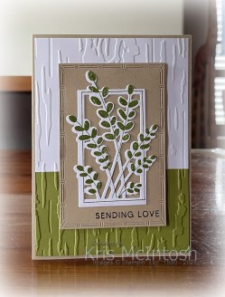 This week in my Facebook Live I shared some cards I created using the Friendly Foliage Bundle. This is an Online Exclusive, so you will have to check out my Online Store to find it. I attached a piece of Old Olive card across the bottom of a Basic White panel. The whole panel is embossed using the Birch 3D Embossing Folder before being attached to scored and folded Crumb Cake card. I cut Crumb Cake card using one of the Textured Notes Dies. I stamped the greeting from the Friendly Foliage stamp set onto the lower right hand corner of the Crumb Cake rectangle using Early Espresso ink.