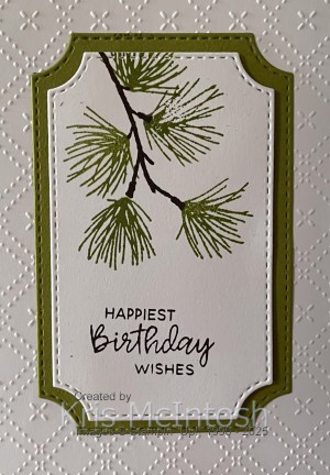 Today I have another card to share using the Branching Out Bundle. For this card I embossed Basic White card using the Beautiful Pattern Embossing Folder. The embossed card is attached to scored and folded Old Olive card. I cut Basic White and Old Olive using two of the dies from the Branching Out Dies. I attached the Old Olive die to the card front. I stamped the tree branch from the Branching Out stamp set onto the Basic White die using Early Espresso ink.