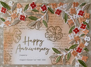 I recently signed up for the 2026 Virtual Card Making Retreat which was held at the end of January. Once you purchase this Retreat and join the Facebook Group you have unlimited access to all of the videos and information supplied. I decided to change the greeting on Card 2 from the retreat to create an Anniversary card for my youngest daughter.