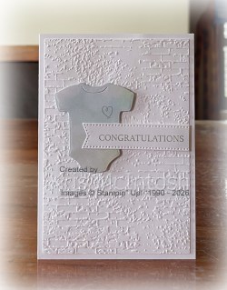Those of you who know me well will know that my Mum is in a Nursing Home and has Dementia. One of the things that she still loves to do is knit, so she knits squares and I have been turning them into small blankets for her to give to her great grandchildren when they become parents. So today I am sharing the cards I created for her to write in to give with the blankets. I embossed Basic White card using the Exposed Brick 3D Embossing Folder.