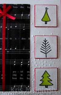 I stamped the candle images onto Whisper White card using Black Archival ink. I filled the candles by stamping the images in Rose Red ink and Garden Green ink. The candle flames were filled with Crushed Curry ink.