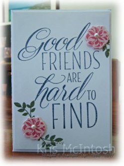 I bought the Lovely Friends stamp set and the co-ordinating Lovely laurel Thinlits in my pre-order and when getting ready for my catalogue launch I was a little stumped for a card. Sooo, I watched the video from Onstage Live in which Sara (CEO Stampin’ Up!) demonstrated how the stamps and Thinlits worked. (This is a resource only available to demonstrators at the moment.) Anyway her card was so pretty I couldn’t go past CASing it exactly as she had made it.