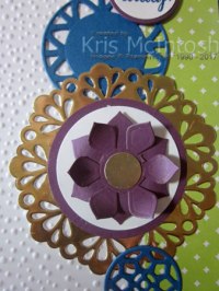 I cut the medallion from the Whisper White card using the Eastern Medallion Thinlit Dies. I embossed the bottom of the same piece of Whisper White using the Petal Burst Embossing Folder.