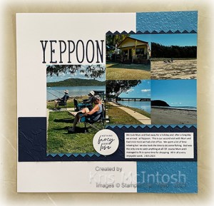Ron and I took Mum and Dad away for a couple of weeks with our first stop at Yeppoon. It’s a long way to go in one day but since we were staying a week we had plenty of time to relax and enjoy. I embossed Azure Afternoon card using the splatter folder from the Stripes and Splatters 3D Embossing Folders before attaching the card to each page.