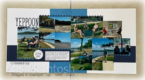 My page today shows off some photos from my youngest daughter’s 11th birthday. Ron’s cousin was staying with us at the time and she made the birthday cake. Seems like a long time ago and at the same just like yesterday! I embossed two pieces of Bubble Bath card using the splatter folder from the Stripes & Splatters folder and added them to Basic White 12″ x 12″ pages along with the photos. I stamped two large balloons and one medium balloon using the images from the Beautiful Balloons stamp set onto Basic White card. One using Misty Moonlight, one using Lemon Lolly and one using Berry Burst. The balloons were cut out using the co-ordinating Beautiful Balloons Dies and attached behind the photo on the right hand page.